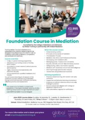 Global Training Group, in partnership with Global Mediation, are running a 6-day Foundation Course in Mediation in June. The course is designed for professionals who want to train as mediators and build confidence, competence and professional readiness.